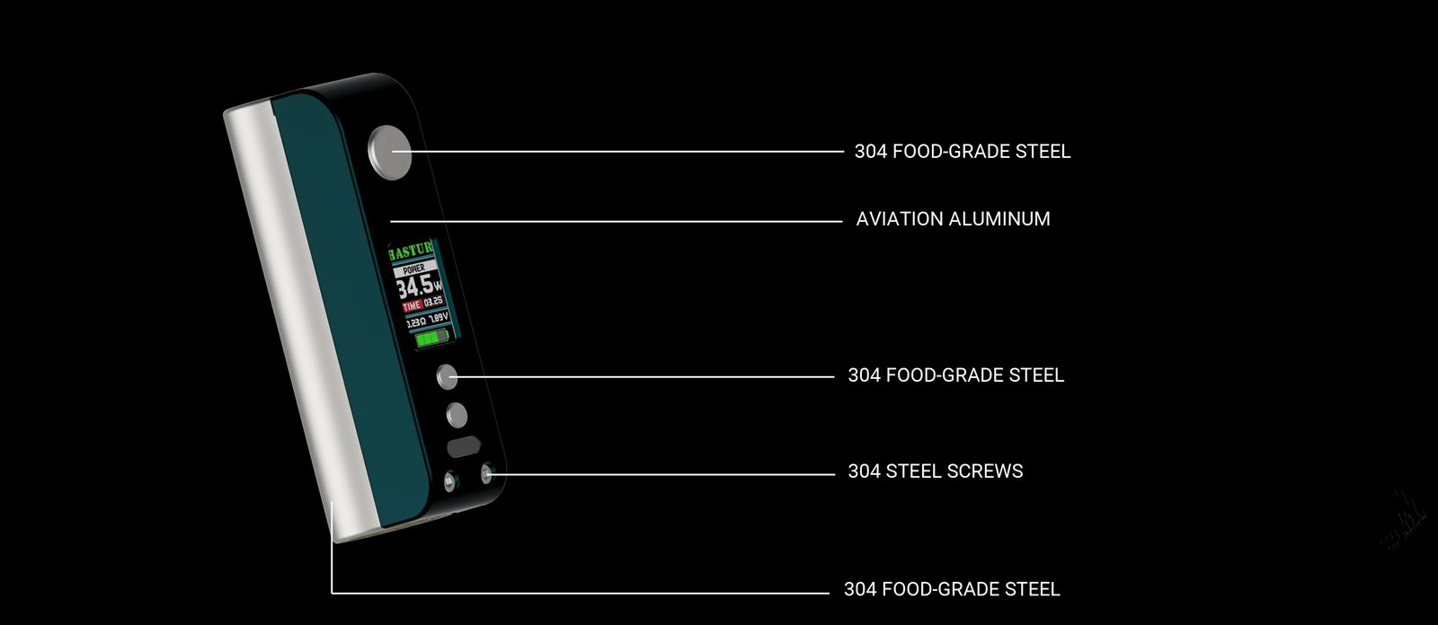 Eine Neuheit namens Hastur 88W TC ist ein klassischer und in Bezug auf das Design sogar etwas altmodischer Box-Mod. Das Gerät wurde in drei Farben geliefert: Schwarz, Grün und Stahl. Das Gerät verfügt außerdem über hochwertige Verarbeitungsmaterialien, darunter Edelstahl und Aluminium.