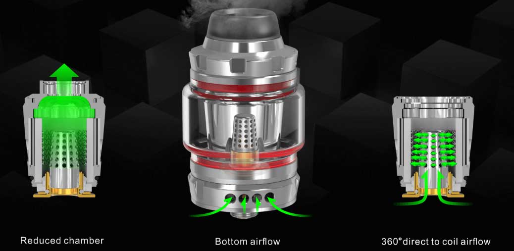 Ein unglaublicher Aspekt des Wotan-Tanks ist die Tatsache, dass er über eine reduzierte Kammer, eine Bodenwaben-Luftstromregelung und einen internen Luftstrom von 360 direkt zur Spule verfügt, um einen unglaublichen, aromatischen Dampf zu erzeugen. Darüber hinaus kann der interne Luftstrom des Damn Vape Wotan-Tanks mit den drei mitgelieferten Luftstromrohren auf volle Wabe, eingeschränkten Luftstrom und vollen Luftstrom eingestellt werden.