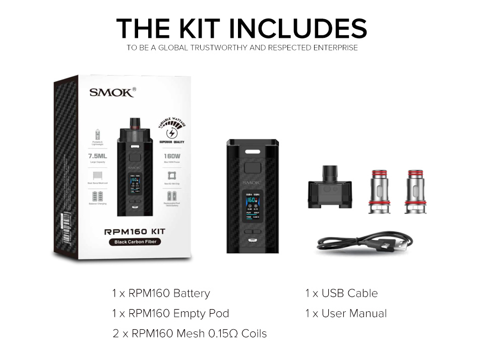 Bitte beachten Sie, dass der SMOK RPM160-Pod nicht mit früheren RPM40-Spulen oder RGC-Spulen kompatibel ist. Es ist nur mit den brandneuen und innovativen RPM160 Mesh-Spulen kompatibel.
