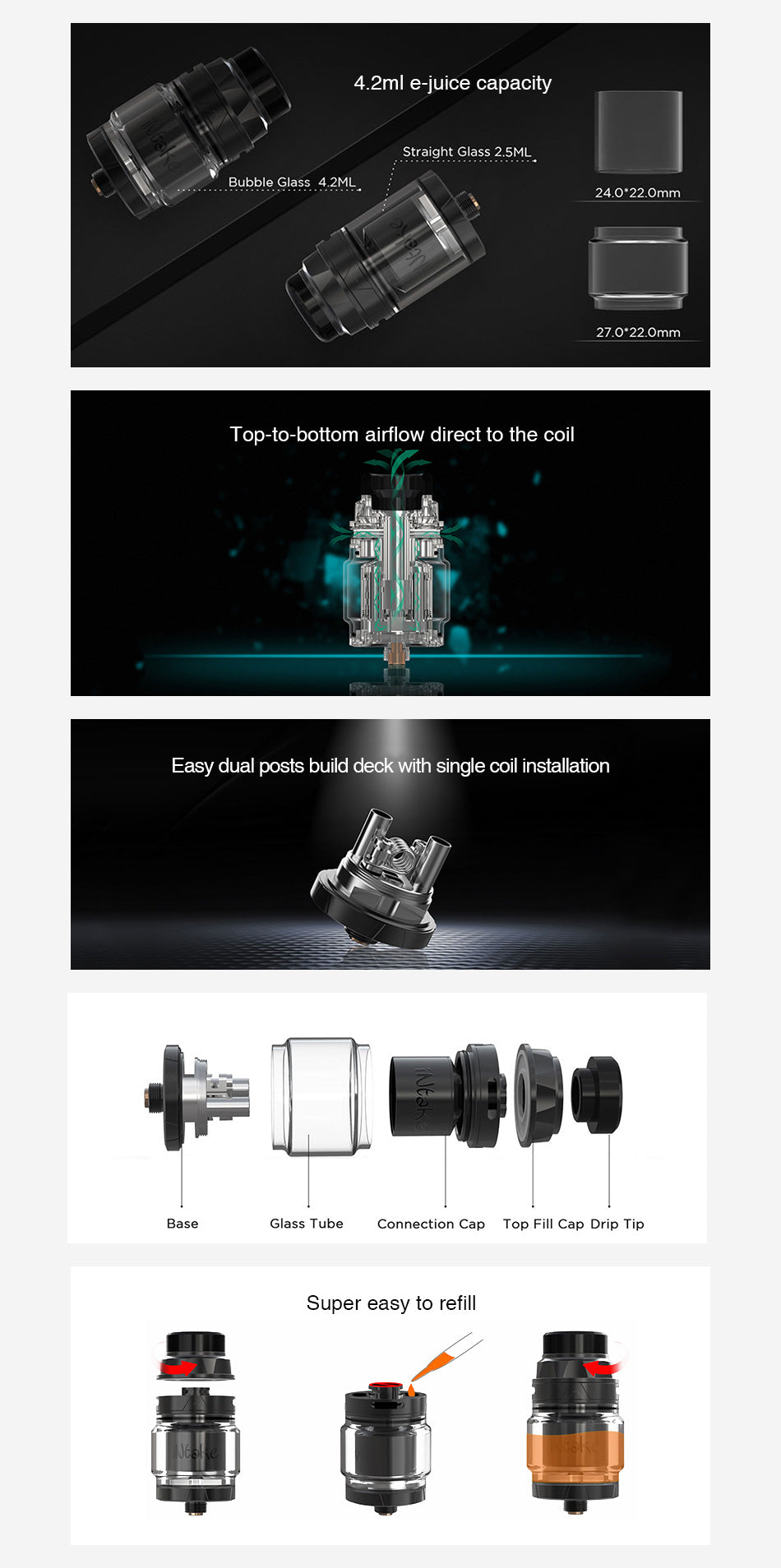 Augvape Intake RTA Tank Verdampfer ist ein einzigartiger, Selbstwickler Tröpfelverdampfer, der von Augvape und Mike Vapes entworfen wurde. b> Der Augvape Einlass RTA Verdampfer nutzt Top-Airflow direkt blasen die Coils an der Unterseite und einfach zu bedienende Selbstwickler Tröpfelverdampfer. Es ist für Single-Coil mit 24 Durchmessern ausgelegt und die auslaufsichere mit zwei Ersatz Glas macht die RDA Verdampfer perfekt, dass keine Probleme der Leckage. Die 4,2 ml e Saft Kapazität bringt extremen Geschmack und treffen Sie Ihre Dampfen-Erfahrung. Augvape Intake RTA Verdampfer ist einfach mit offenen Kanälen von zwei Gebäudepfosten zu bauen. 4 Farben für Sie zu wählen.