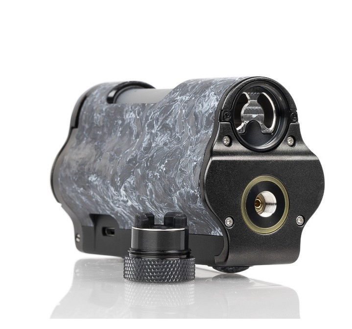 Dovpo und das Vapor Chronicles stellen den Topside Dual Carbon vor, der mit einem Kohlefaser-Chassis sowie einem integrierten YiHi-Chip ausgestattet ist. Dieser neue TOPSIDE DUAL CARBON imitiert das Design des originalen TOPSIDE DUAL Squonk Mods, bietet aber ein stärkeres und ansprechendes Carbonfasergehäuse. Es verfügt über einen 200W fähigen proprietären YiHi Chipsatz und zwei 18650 Akkus. Wie die Vorgängerversionen verfügt diese auch über eine große 10ml Silikonflasche und ein Top Fill System. So können Sie schnell und einfach Ihre bevorzugten iquids einfüllen. Es verfügt über einen federbelasteten 510 Anschluss und kann problemlos größere Verdampfer aufnehmen. Es verfügt auch über ein großes 0,96 Zoll TFT Farbdisplay und eine 3 Tasten Bedienung. Schließlich sind viele Sicherheitsfunktionen eingebaut.