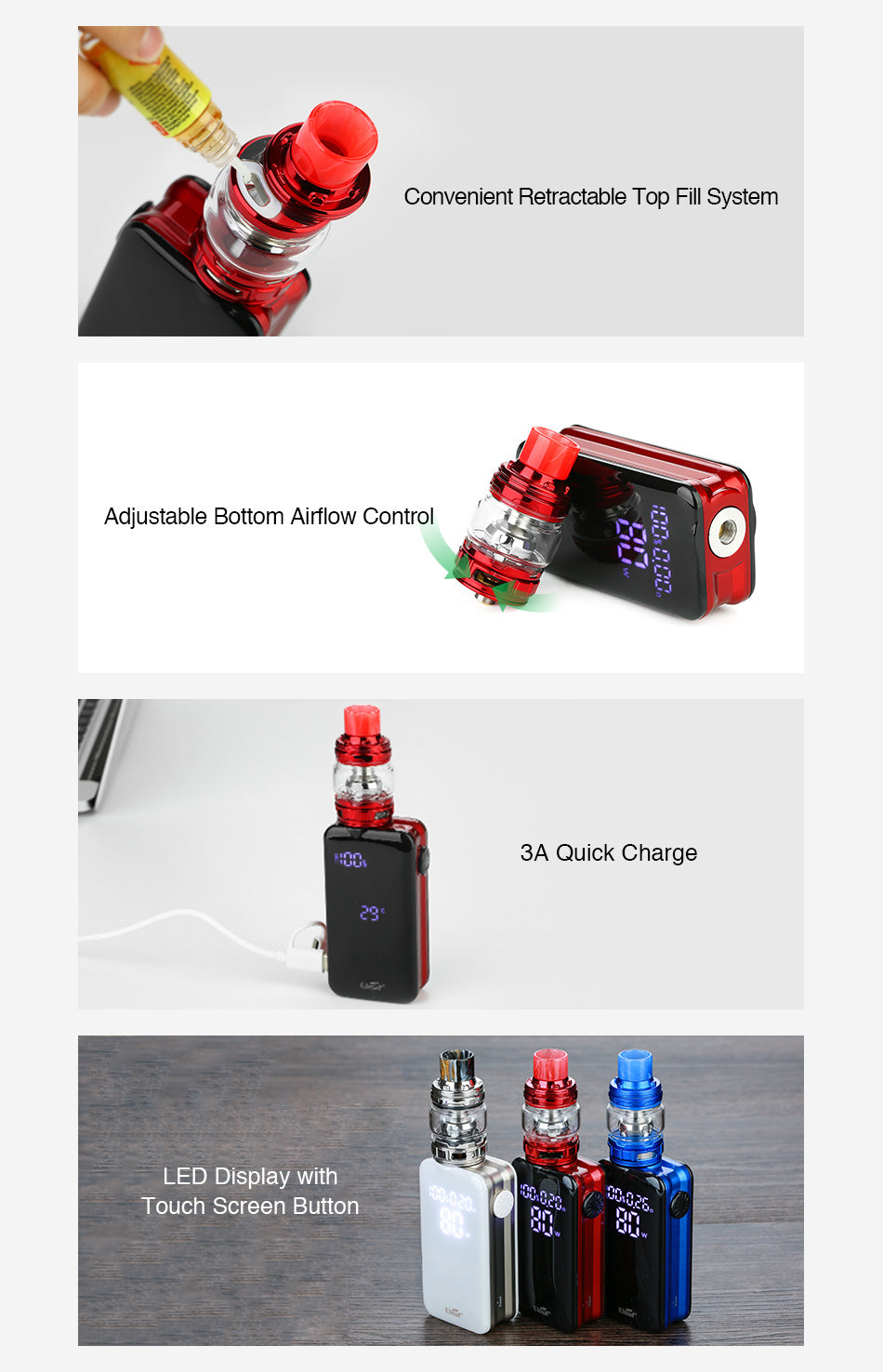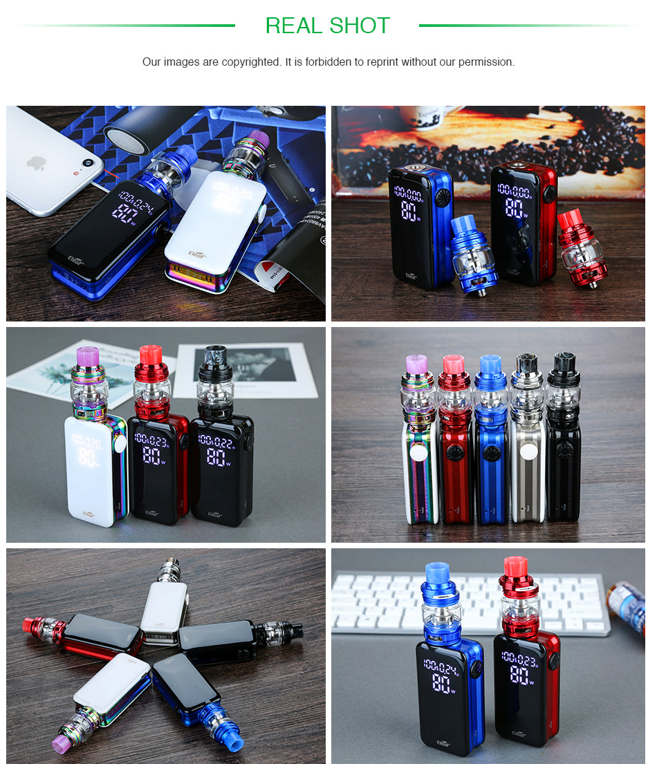 Das Eleaf iStick Nowos Special Edition Kit besteht aus zwei Teilen: Eleaf ELLO S Atomizer und Eleaf iStick Nowos 80W Mod. Der Eleaf ELLO S Atomizer kann 2 ml E-Saft aufnehmen. Die Verpackung wird mit einem zusätzlichen 4 ml Glasröhrchen geliefert. Nach der Installation des zusätzlichen Glasröhrchens kann Ihr ELLO S Atomizer mehr E-Saft aufnehmen. Der ELLO S Zerstäuber mit einziehbarem oberen Nachfülldesign, ohne Drehen der oberen Kappe und leichtem Einspritzen des E-Safts. Die großen unteren Luftstromschlitze ermöglichen es den Vapern, den Luftstrom schnell und einfach einzustellen. Der Eleaf ELLO S Zerstäuber wird mit einem HW3-Dreizylinder-0,2-Ohm-Kern und einem HW4-Vierzylinder-0,3-Ohm-Spulenkopf geliefert. Es wird eine große Dampf- und Geschmackswolke erzeugt.