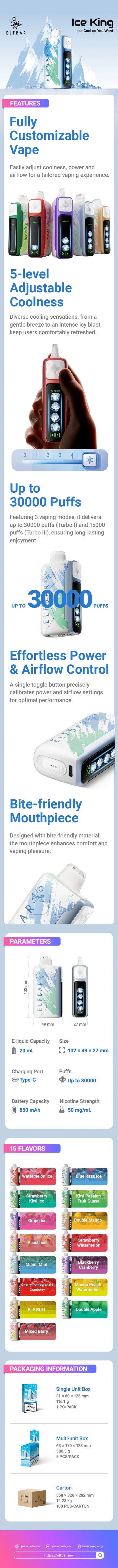 1 Stück* ELF Bar Ice King 30K Wiederaufladbares Einweg Kit (30000 Puffs)