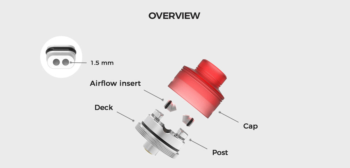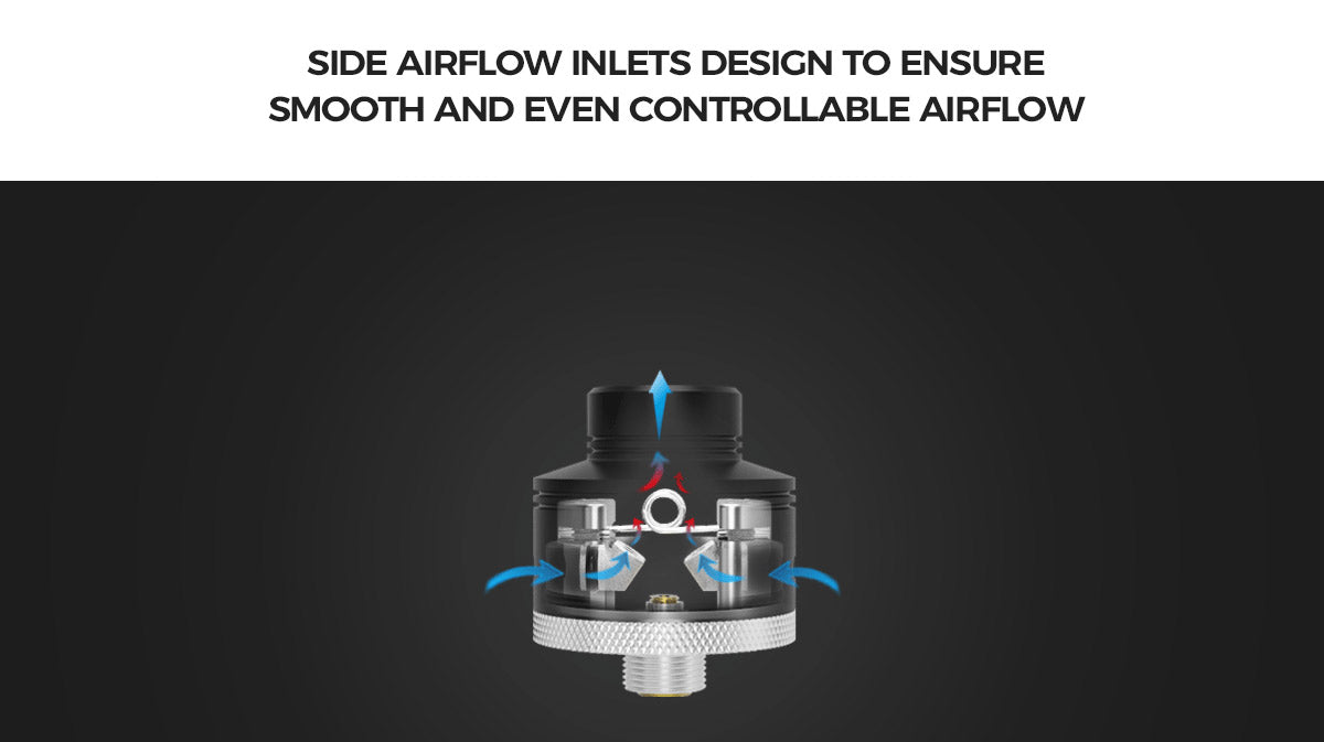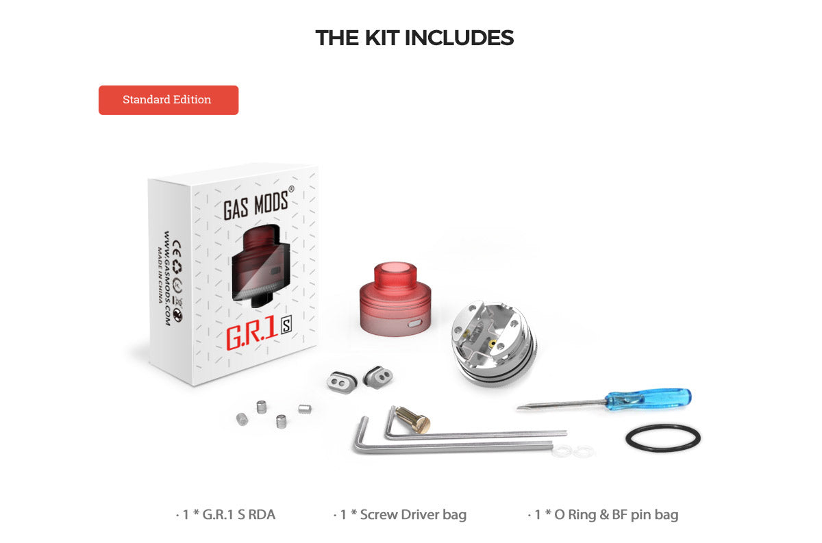 Gas Mods G.R.1 S RDA wurde auf Basis des Gas Mods G.R.1 RDA aktualisiert und optimiert. Hergestellt aus Edelstahl und PMMA / POM mit hervorragenden hitzebeständigen Eigenschaften. Das Baudeck des GR1 S RDA weist die hervorragende Bauqualität auf, die Sie von echten High-End-Verdampfern erwarten. Es hat vier Pfostenlöcher an gegenüberliegenden Seiten des Decks, sodass Sie Ihre Coils in verschiedene Richtungen wickeln können. Das Deck verfügt außerdem über eine kleine Kerbe an beiden Seiten des Decks, in die Sie Ihre Wickelstange einsetzen können, um sicherzustellen, dass Ihre Coil zentriert ist und sich an der richtigen Stelle für die Luftstromdüsen befindet. Der G.R.1 S hat Luftlöcher, die den mittleren Luftstrom regulieren. Er kann Ihren unterschiedlichen Dampfwolkenanforderungen gerecht werden. Der Luftstrom trifft fast auf die Unterseite der Coils und liefert einen fantastischen Geschmack. Außerdem ist der im Lieferumfang der Gas Mods GR1 RDA enthaltene Squonk Pin vergoldet.