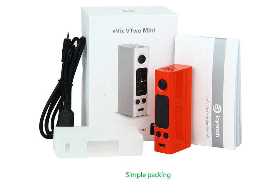 Der Joyetech eVic VTwo Mini 75W Box Mod Akkuträger, mit der Firmware-Version 4.02 unterstützt Custom Logo und RTC (Real Time Clock) Display mit Uhr Displayschutz, wird von einer auswechselbaren 18650 Zelle gespeist und die Leistung kann bis 75W erreicht werden mit fortgeschrittenem Temperatureinstellung System, das VT und VW Modus unterstützt. Der eVic VTwo Mini Mod Akkuträger wird mit exquisitem 510er Anschluss aufgetragen. Und Evic VTwo Mini Box Mod Akkuträger hat Multi Farben für Ihre Option. Der farbenfrohe und modische eVic VTwo Mini Mod Akkuträger wird Ihr Vaping-Leben farblich gestalten.