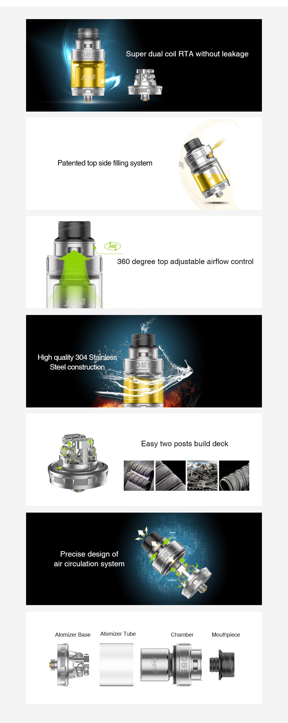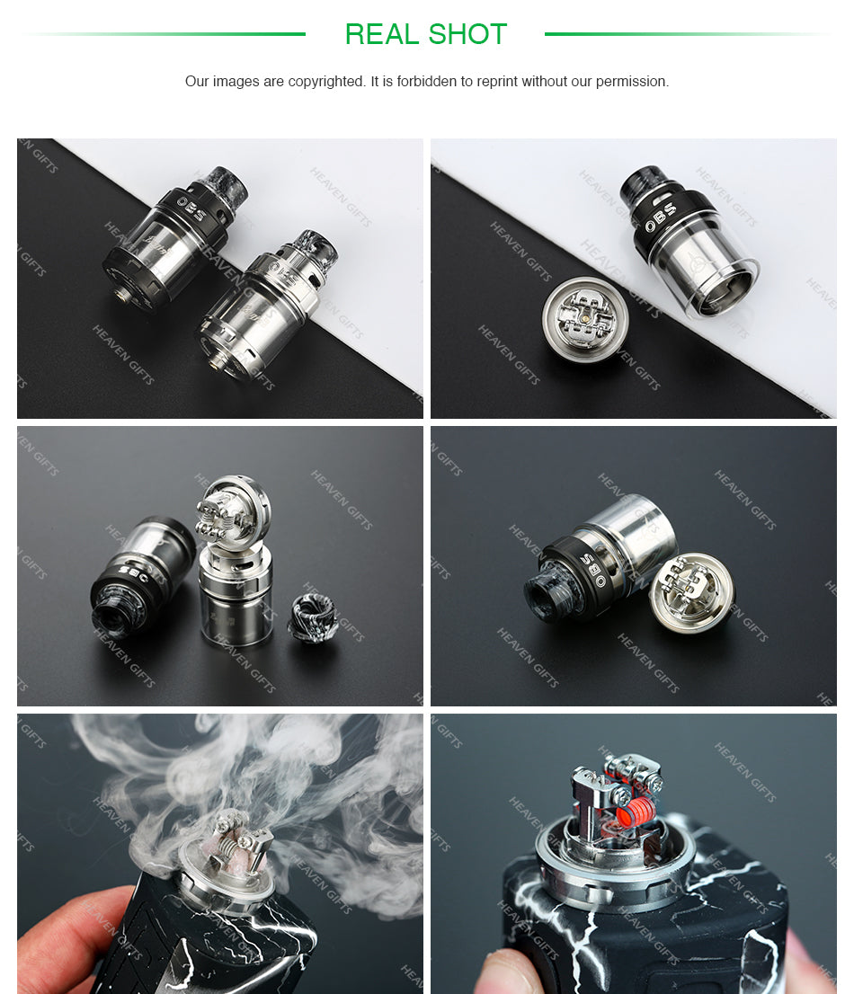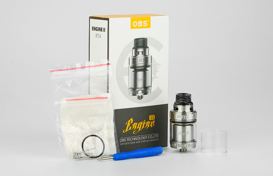 Der OBS Engine II RTA ist ein innovativer, wiederaufbaubarer Selbstwickler Verdampfer. Im Vergleich zu seinem Vorgänger unterstützt OBS Engine 2 RTA den Aufbau von DoppelCoils. Der hat eine 4ml Saft Kapazität mit patentierten Top-Side-Abfüllanlage, die nicht nur Ihren täglichen Dampf Bedürfnisse erfüllen können, auch Leckagen effektiv zu stoppen. Was mehr ist, der Motor 2 RTA Selbstwickler Verdampfer nimmt 360-Grad-obere justierbare Luftstromsteuerung und genaues Design des Luftzirkulationssystems an und macht mehr Lufteinlass mit glattem Aroma und Kräften auf dem Dampf. Die einzigartigen zwei Pfosten, die Plattform bauen, erleichtert das Bauen und das Saugen. Kurz gesagt, der Motor II RTA Selbstwickler Verdampfer ist definitiv ein ausgezeichneter Tank für Dampfer!
