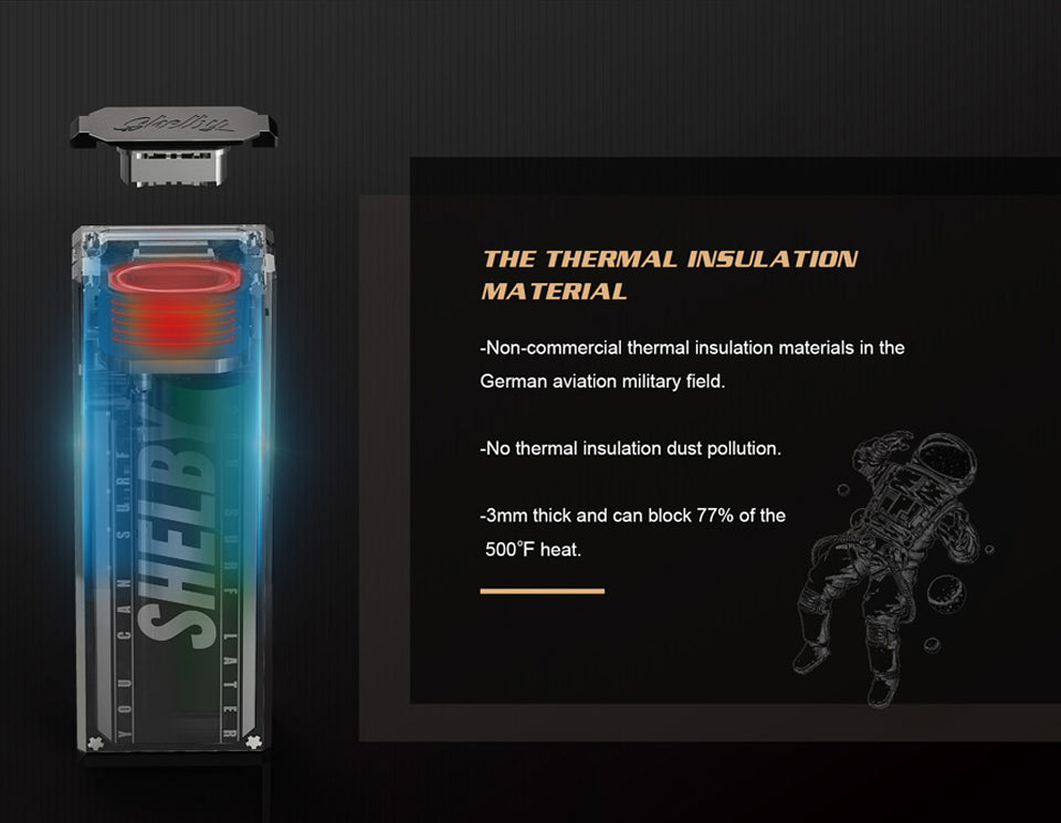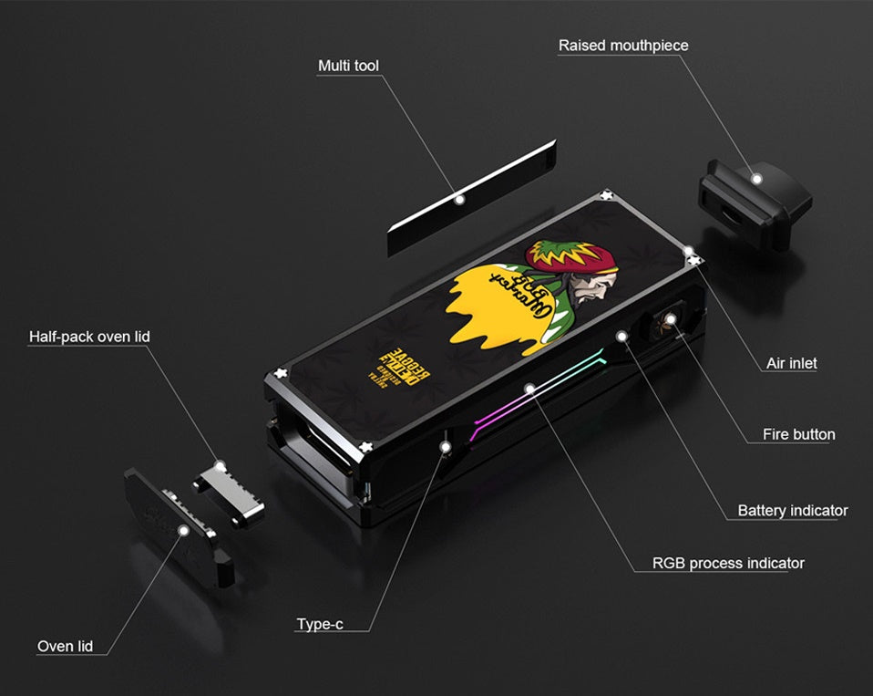 Shelby Noir DH Kit ist ein hervorragendes Kräuterverdampfungsgerät mit Konvektionsheizung, das von einem 2500mAh-Akku mit hoher Kapazität betrieben wird. Ausgestattet mit japanischem NTC mit extrem empfindlicher und effizienter Sicherheitsgarantie und Umgebungstemperatur, die alle 0,02 Sekunden gemessen wird. Im Gegensatz zu herkömmlichen Wärmedämmungsmaterialien verwendet das Noir DH-Kit das Wärmedämmungsmaterial für die deutsche Luftfahrt, das 3mm dick ist und 77% der 500°C-Wärme blockieren kann. Die Konvektionsverdampfung sorgt für vollen Geschmack und perfekte Reduktion, das Kräutermaterial berührt die Wärmequelle nicht direkt. Stattdessen wird die Verdampfung erreicht, indem erwärmte Luft durch das Material geleitet und die Wirkstoffe extrahiert werden. Außerdem ist das Noir-Kit mit einem Wärmerückgewinnungssystem ausgestattet, das eine schnellere Erwärmung ermöglicht. Der Luftstrom tritt von oben und von der Seite ein, nimmt die Wärme im Inneren der Maschine auf und strömt dann vom "Noir" -Innenraum zum Mundstück.