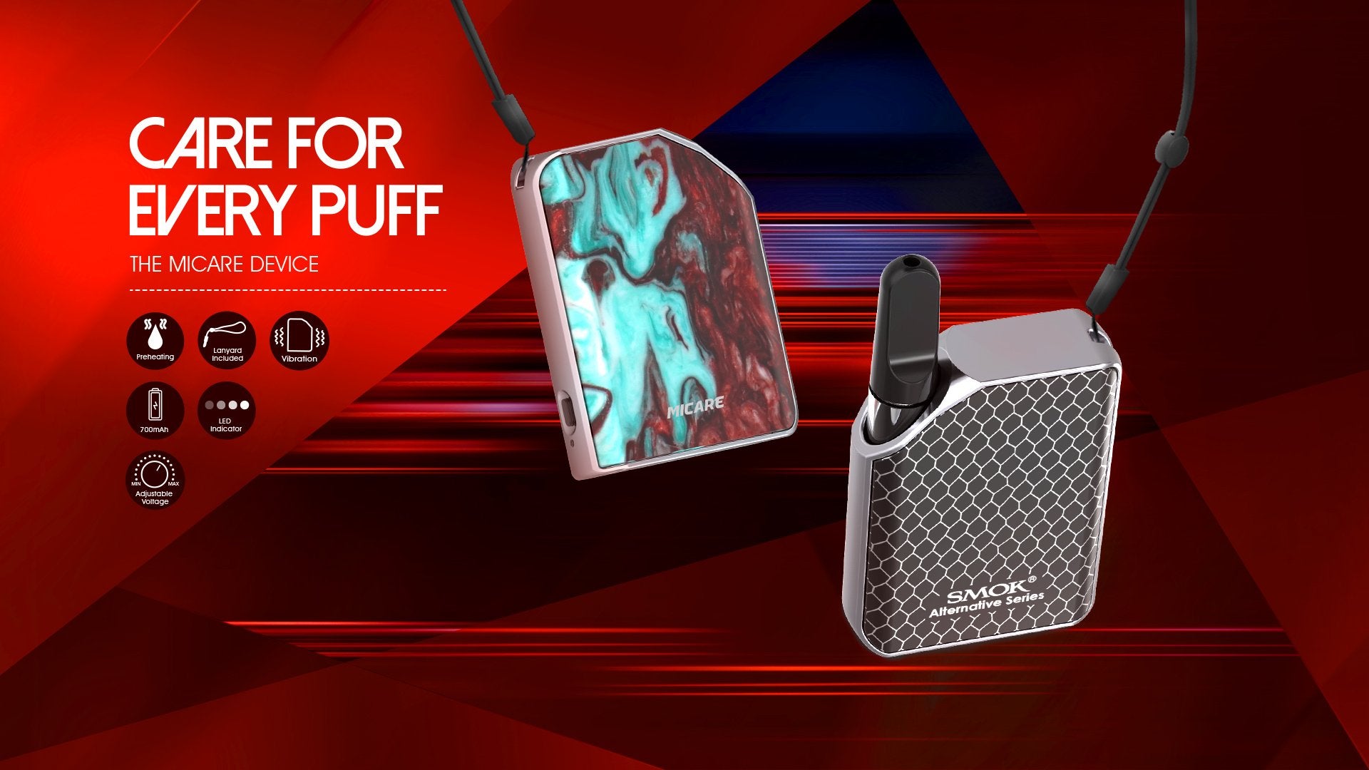 Das SMOK Micare Kit ist ein speziell für hochviskoses Öl entwickeltes Gerät. Es verfügt über eine eingebaute 700 mAh Batterie für eine lange Verdampfungszeit und eine einstellbare Spannung für verschiedene Verdampfungswirkungen. Vibrationsfunktion und LED Design zeigen den Nutzungsstatus an. Es ist auch mit einer 10-Sekunden Vorheizfunktion ausgestattet, die das Öl perfekt verflüssigen kann und einen ausgezeichneten Geschmack bietet. Neben den oben genannten Funktionen verfügt das Micare auch über eine Vibrationsfunktion. Eine Vibration bedeutet, dass der Pod bereits in Position ist oder das Vorheizen beendet ist, und drei Vibrationen bedeuten, dass das Einatmen länger als 8 Sekunden dauert. Apropos Pod, diesmal gibt es zwei Versionen, den T1 und den Q1. Darüber hinaus bietet jede Version zwei Arten von Kapazität. Wenn Sie mit dem 0.5ml Pod nicht zufrieden sind, ist der 1ml Pod möglicherweise in der Lage. Alle diese Pods werden mit einem Keramikspulenkopf geliefert, der Widerstand ist jedoch unterschiedlich. Der Kopf in T1 hat einen Widerstand von 1.4 Ohm, während der andere in Q1 1,2 Ohm beträgt. Mit diesen Spulenköpfen bringen Ihnen die Pods vielfältigere Dampferlebnisse. Insgesamt ist das Micare ein atemberaubendes Pod System, das Sie nie bereuen werden.