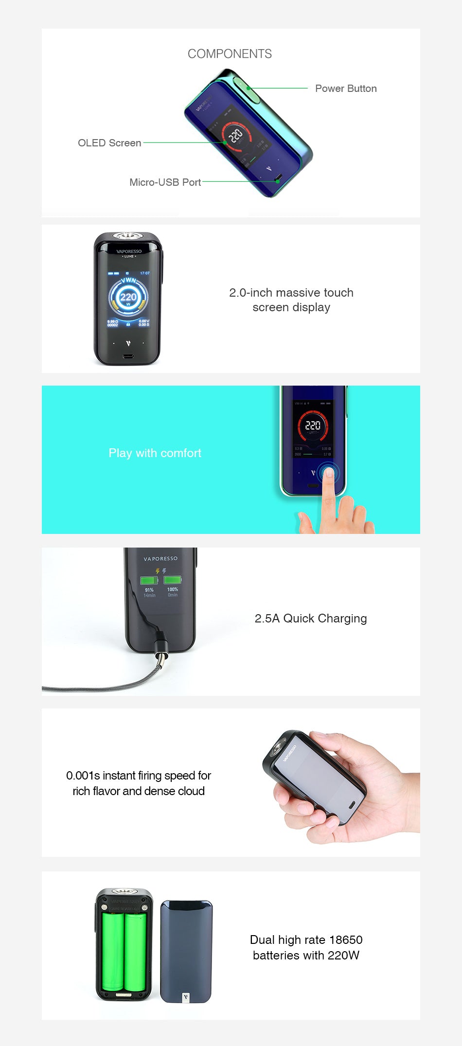 Vaporesso LUXE 220W Touch Screen TC Box Akkuträger