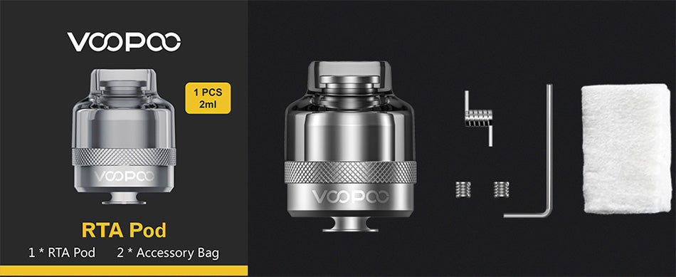 VOOPOO RTA Pod ist die wiederaufbaubare Tankzerstäuberversion des PNP Pod Tanks. Der Unterschied zu letzterem besteht darin, dass der VOOPOO RTA Pod keine 510-Basis hat, aber ein Build-Deck mit regulärem RTA im Inneren vorhanden ist. Der VOOPOO RTA Pod verwendet ein RBA-Deck für den einfachen Bau von Einzelspulen. Der VOOPOO RTA Pod ist am besten mit PnP Pod-Geräten wie dem DRAG X 18650 Mod Pod Kit / dem DRAG S 60W VW Pod Kit 2500 mAh/DRAG 2 Refresh Edition Kit/Drag Mini Refresh Edition Kit kompatibel. Sie können den RTA-Pod auf der VOOPOO PnP-Tankbasis installieren und auf einen RTA-Tank mit 510 Gewinden umstellen. Der VOOPOO RTA Pod hat eine Saftkapazität von 2 ml mit Bodenluftstromsystem.