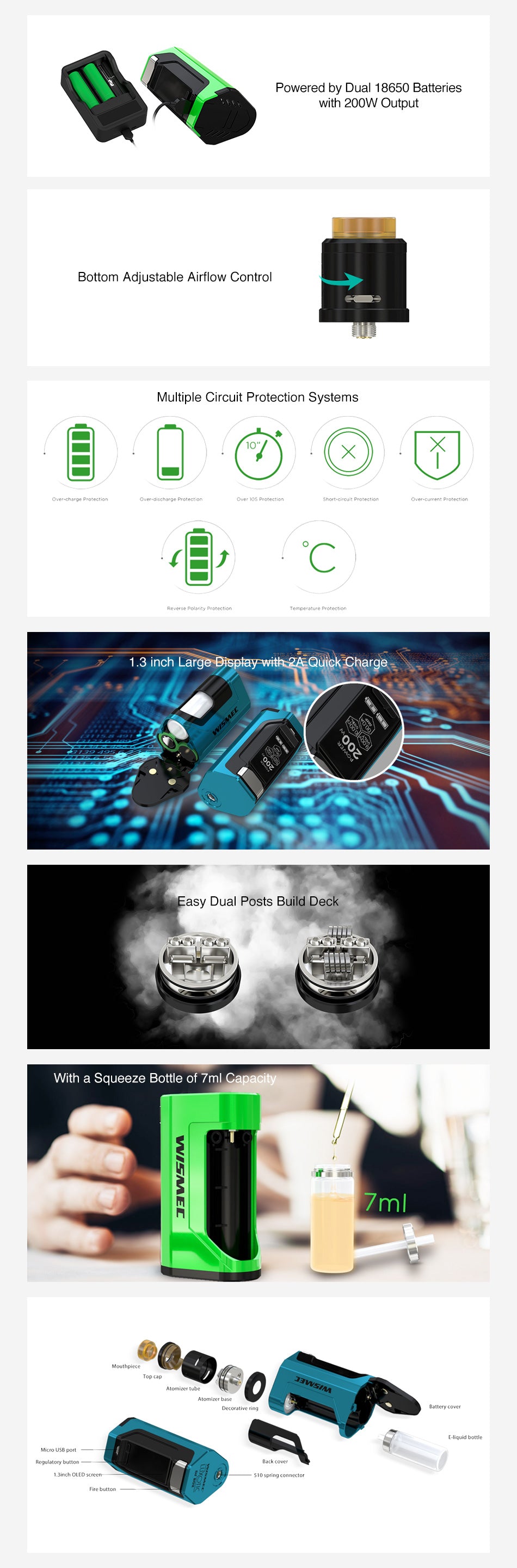 Wismec Luxotic DF Akkuträger liefert eine starke männliche Kraft. Mit dem neu entwickelten Squonk-System und der internen nachfüllbaren iquid Flasche mit einer Kapazität von 7 ml bietet der duale 18650-Box-Mod eine maximale Leistung von 200 W. Die kunstvoll geschnitzten Linien und das Schnittdesign sorgen für eine starke maskuline Kraft. Die LUXOTIC DF BOX Akkuträger ist zwar robust, aber dennoch eine gute Wahl für alle Liebhaber. 4 Farben stehen zur Verfügung.